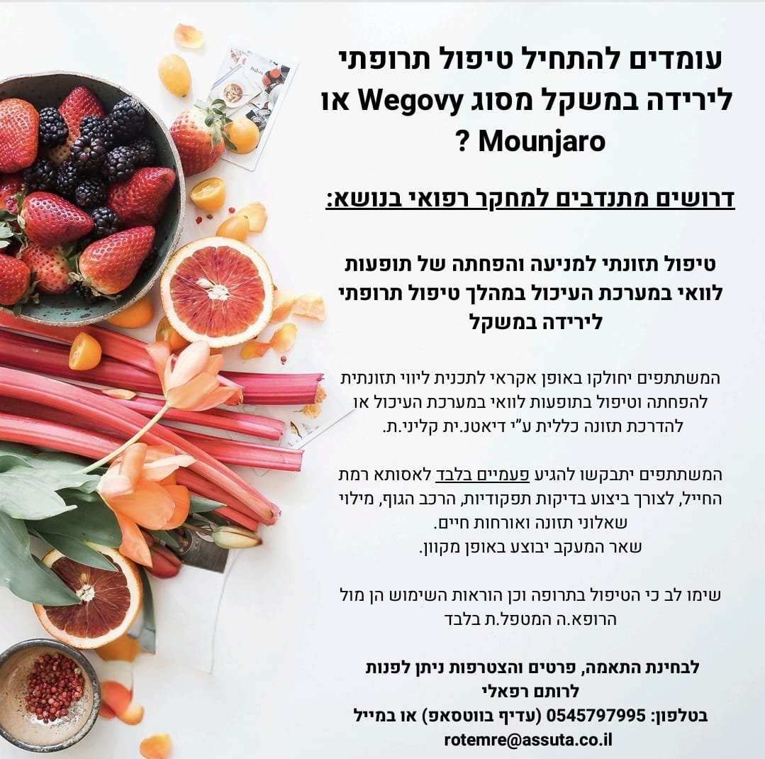 בימים אלו מתקיים במרכז להפרעות אכילה מחקר ראשון מסוגו בתחום הפסיכדליה,
